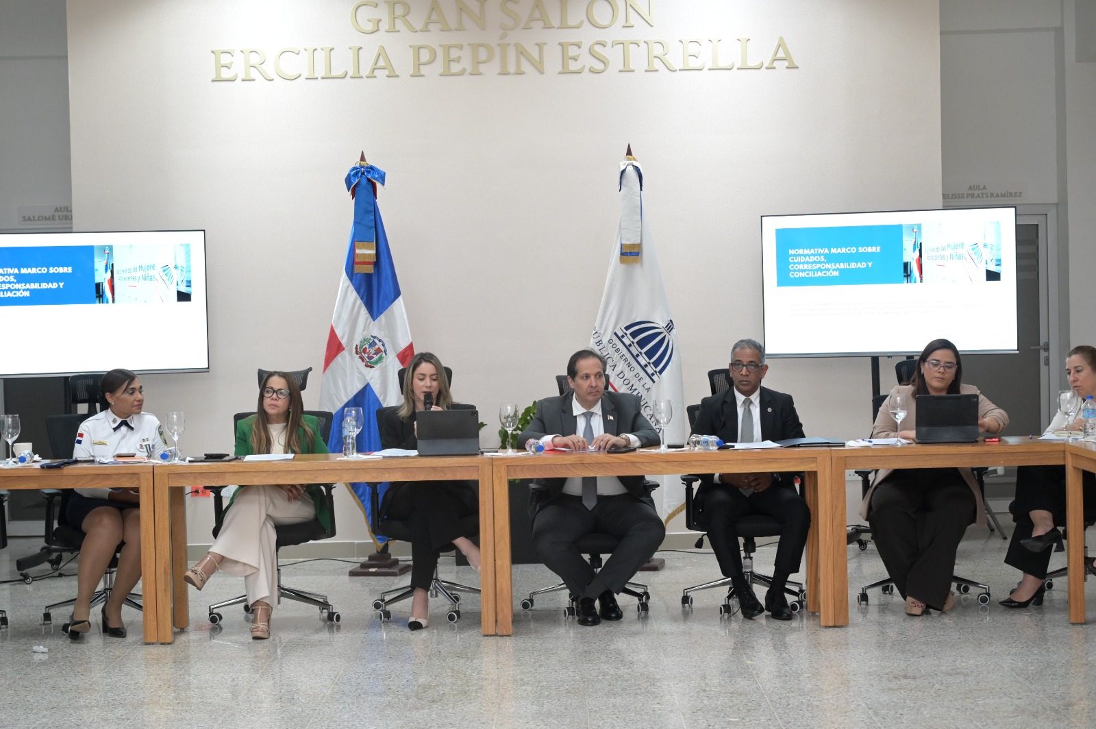 Las comisiones técnicas quedaron estructuradas en mesas temáticas con liderazgos claramente definidos: Marco Legal y Normativo, coordinada por el Poder Judicial; Prevención y Sensibilización, bajo la responsabilidad del Ministerio de la Mujer; Reparación y Autonomía, también liderada por el Ministerio de la Mujer; Atención y Respuesta Institucional, a cargo de la Procuraduría General de la República; Datos, Monitoreo y Evaluación, coordinada conjuntamente por la Oficina Nacional de Estadística (ONE) y el Ministerio de la Mujer; y Seguridad, Denuncia y Protección, liderada por la Policía Nacional.