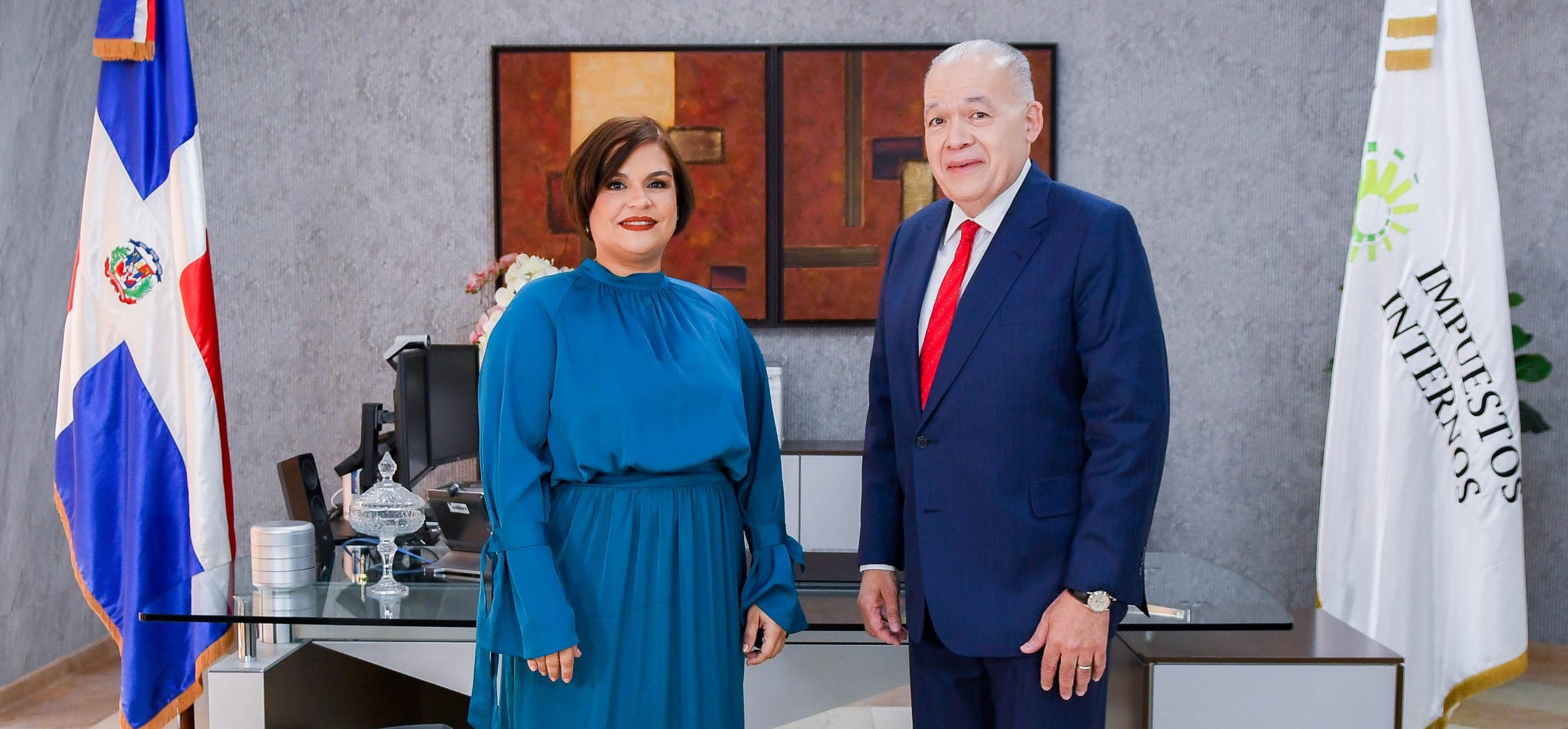 El Director General de Impuestos Internos, Pedro Urrutia junto a la Gerente de Comunicación Estratégica y conductora de DGII 360, Marleny Hernández 1